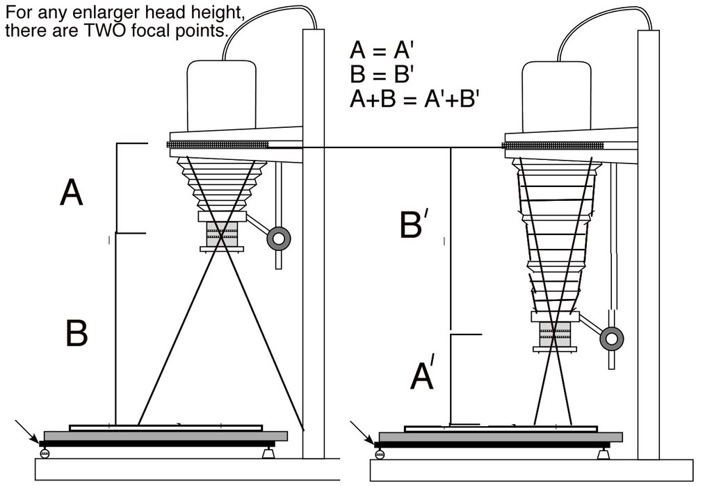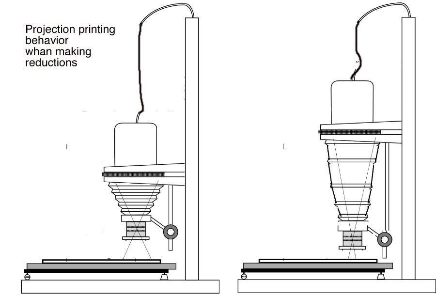 I personally do not have access to an enlarger with what seem like very long lens stage bellows in the above diagrams.